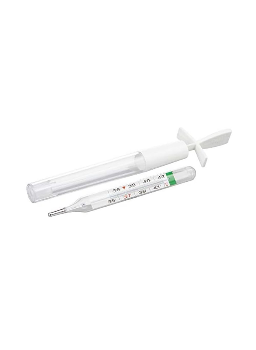 T-FLAP is a conventional mercury-free thermometer for determining body temperature. The thermometer consists of a hygienic glass cover. Inside is a liquid metal of gallium, indium and tin for accurate measurement. To restore the liquid of the screen after the measurement, T-FLAP offers a special solution: insert the thermometer into the plastic case, close the lid, put the thumb and forefinger around the handle and turn the thermometer in the housing back.